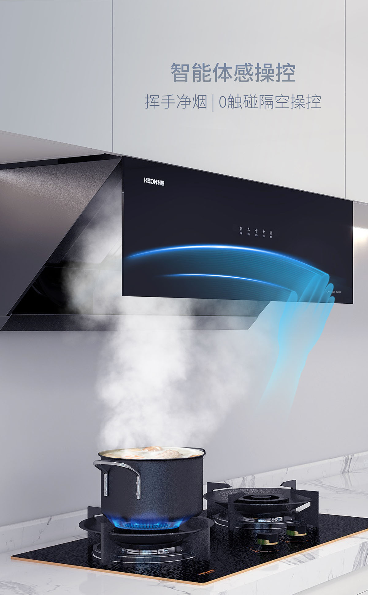 • 智能體感操控,揮手凈煙,0觸碰隔空操控