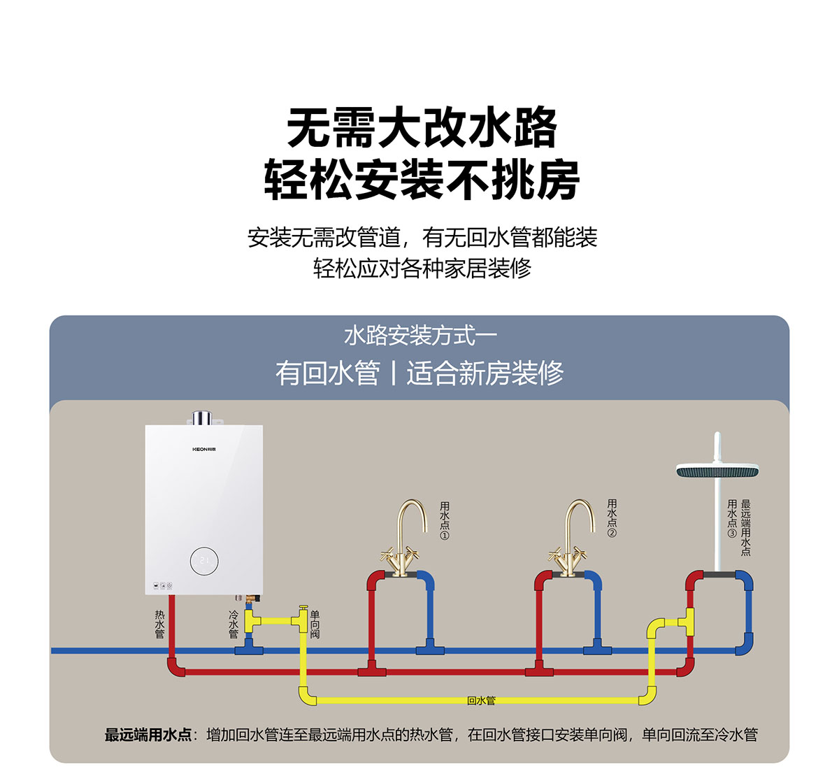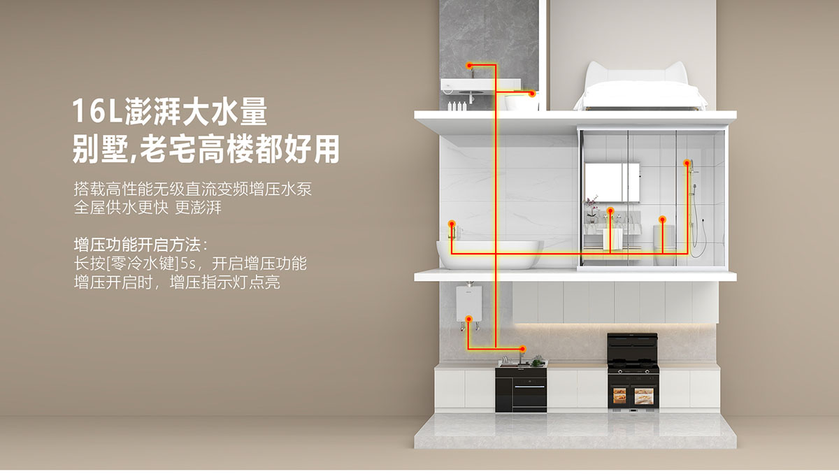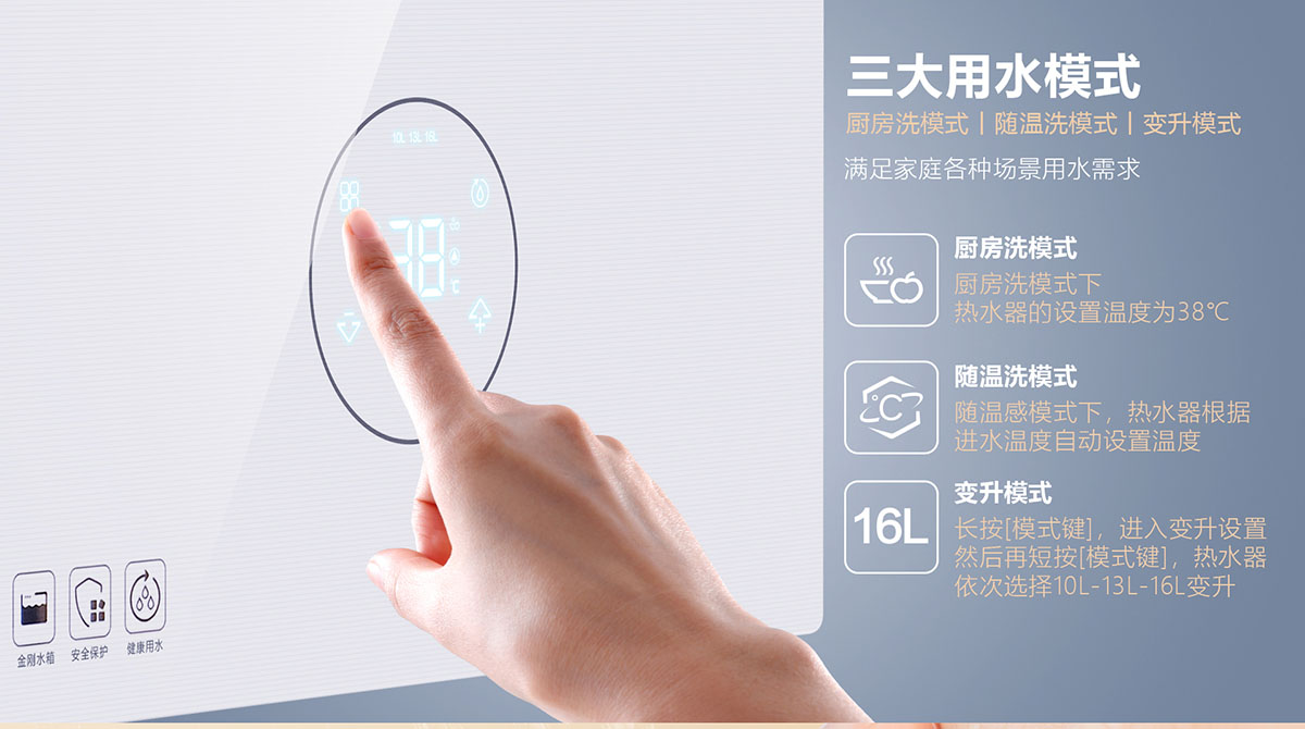 - 采⽤分段燃燒技術,⽔溫調節范圍更廣,速度更快