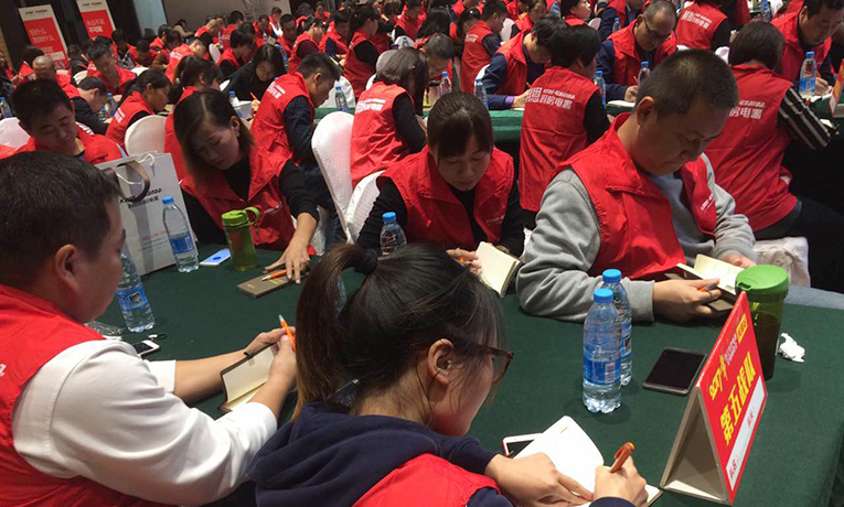 隨后的互動(dòng)環(huán)節(jié),為了使在座的全體經(jīng)銷(xiāo)商家人能夠全身心的參與啟動(dòng)會(huì)的各項(xiàng)議程,以互動(dòng)的形式開(kāi)展了一系列的破冰游戲,以迥異的英姿和飽滿(mǎn)的熱情展現(xiàn)了彼此的自信與風(fēng)采,以團(tuán)結(jié)的姿態(tài)投入為期三天的特訓(xùn)。大會(huì)現(xiàn)場(chǎng)氣氛活躍積極,洛陽(yáng)各經(jīng)銷(xiāo)商家人和科恩育商團(tuán)隊(duì)相互探討,共謀發(fā)展,并認(rèn)真進(jìn)行了實(shí)戰(zhàn)模擬演練。縝密的會(huì)議籌備、鏗鏘的會(huì)議進(jìn)程,鼓舞了在場(chǎng)經(jīng)銷(xiāo)商家人們齊聚一心,向未來(lái)廚電市場(chǎng)發(fā)起凌厲攻勢(shì),實(shí)現(xiàn)廠(chǎng)商互利共贏(yíng)的新局面。