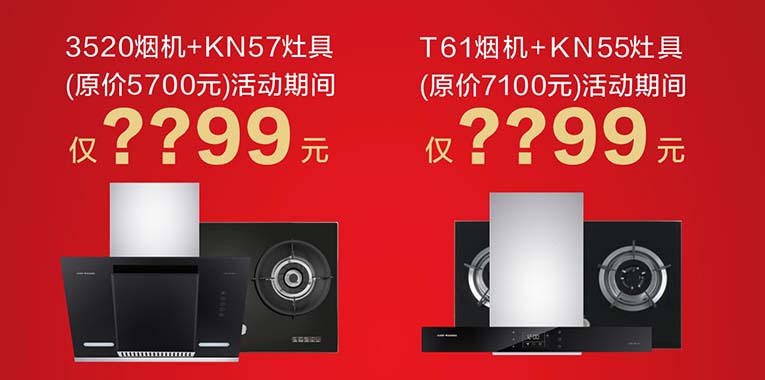 如“小身材,大作為”的側吸式煙機3520與顛覆傳統設計,耐800°高溫,死角打破常規直角邊設計而采用圓弧設計,彰顯高端品位的“小鋼炮KN57”燃氣灶搭配滿足了私房廚房空間小而精致的需求;采用360°立體環吸技術,擁有20m3/min瞬時大吸力的“云吸III”系T61與采用內中外三環勁火,擁有超高燃燒率的“鋼化玻璃燃氣灶”KN55完美的搭配,除為用戶營造了健康、舒適的烹飪廚房環境之外,其熱銷能讓廚房烹飪更節能!